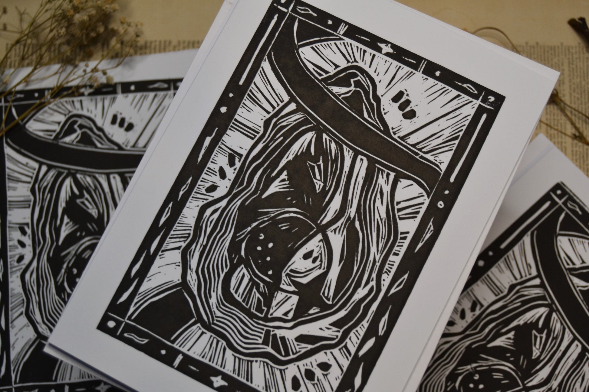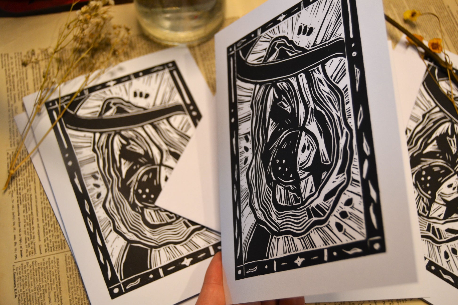 Dive into something special with this hand-printed linocut card featuring a wonderful maritime theme. Each card is individually crafted using traditional linocut printing techniques, giving it its own unique character. The blank interior leaves plenty of room for your own message—perfect for birthdays, celebrations, or just because.